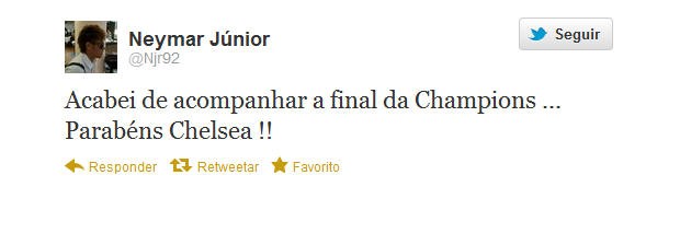 - Acabei de acompanhar a final da Champions ... Parabéns Chelsea !! - declarou Neymar.